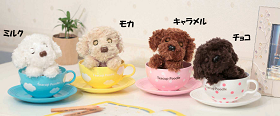 モコモコとしたやわらかい毛がカワイイメガハウスは、ティーカッププードルをモチーフとしたおもちゃ「ティーカップ プードルプチプー」の販売を2008年9月下旬に開始する。ティーカップに入るほど小さく、頭をなでると、「キャンキャン」「クークー」とかわいい声で鳴く。付属のティーカップに入れると、目を閉じて眠り、耳をすますと愛らしい寝息も聞こえるという。サイズはW130×D130×110mm(カップ含む)。LR-44電池2個内臓。種類はミルク、モカ、キャラメル、チョコの4種。価格は1764円。