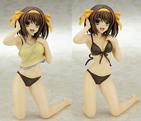(C)2006谷川流・いとうのいぢ/SOS団模型やフィギュアの企画・販売を行っている壽屋は2008年11月、人気アニメ「涼宮ハルヒの憂鬱」のヒロイン、涼宮ハルヒのフィギュア「ビーチサイドVer.」を発売する。7分の1スケールで全高15センチ。タンクトップは着脱可能で、外せば黒いビキニ姿になる。弾けるような笑顔と、健康的なボディラインが印象的だ。コルク製の専用ベースが付属して、価格は6090円。
