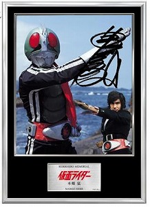 1971年放送の「仮面ライダー」主人公の本郷猛役をした藤岡弘さんの協力で実現した。仮面ライダーを放送当時に撮影されたスチール画像を用いて、ヒーローに変身する藤岡さんの写真画像、そしてその直筆サインを入れた記念フォト フレームパネルになっている。