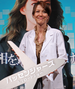 タレントの山本モナさん(33)が2009年2月24日、東京・九段で開かれた米映画「パッセンジャーズ」の特別試写会に登場した。ブログで会社社長との交際を明らかにしたばかりの山本さんだが、報道陣の質問に対しては、「ハラハラドキドキは、映画の中だけ」などと、多くは語らなかった。