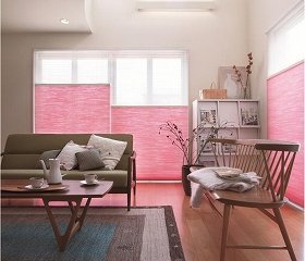 ハニカムスクリーンは六角形のハニカム(蜂の巣)構造で、室内側と室外側との間に空気層ができることで保温性を発揮し、冷暖房の効率を高めることができる。全9色のスクリーンすべてが防炎品かつホルムアルデヒドの放散量が少なく安全とされる認定品。