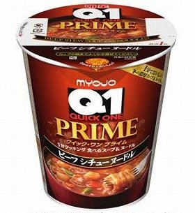 明星食品は、1分間で素早くできる食べるスープ&ヌードル「明星 Quick1」ブランドから2013年11月4日、、1ランク上の濃厚スープにこだわったタテ型BIGサイズカップめん「明星 Quick1 PRIME ビーフシチューヌードル」を発売する。