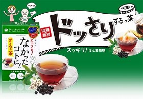 『なかったコトに!するっ茶』は、ドクダミ、ハブ茶、サンペンズ、ゴールデンキャンドルの厳選された4種類のスッキリ&どっさり成分、アマチャヅル、クコ葉、トウモロコシ、ハト麦、ビワ葉の5種類のおやすみタイム充実成分とサンペンズ、黒大豆の2種類の溜め込む食生活サポート成分の計11種類の茶葉で、ポッコリお腹をすっきり解消させる。ノンカフェインなので睡眠前のリラックスタイムを妨げず、香ばしくて飲みやすい麦茶風味のお茶に仕上げた。