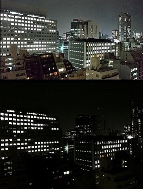 GALAXY S5(上)で撮った夜景とiPhone 5sで撮った夜景(下)