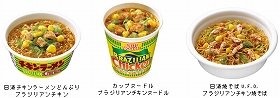 日清食品は、「カップヌードル ブラジリアンチキンヌードル」「日清焼そばU.F.O. ブラジリアンチキン焼そば」「日清チキンラーメンどんぶり ブラジリアンチキン」の3品を2014年5月26日に全国で発売する。