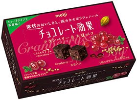 明治は、「チョコレート効果」ブランドから新商品「クランベリー&大豆パフBOX」を2014年8月5日から全国で発売する。