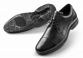 外回りの多いビジネスマン向けに、本格的なウォーキングシューズの機能を備えながらもスーツなどのビジネスシーンでも着用できるストレートチップのデザインに仕上げた。