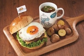「今日くらいガマンしなくていんじゃね? ダイエットなんて関係ね~! 味も量もよくばった甘やかしメニュー食べて明日から本気出せばい~じゃん...」という"ぐでぐでとやる気のない"「ぐでたま」ならではのコンセプトと、「気どらず! おいしく! ぐでぐでと食を楽しんでもらいたい!」という考えから、同カフェでは秋限定のコラボメニューを提供する。「ぐでたまバーガー」(1780円、税別、以下同)や「ぐでエッグベネディクト」(980円)、「ぐでプリン」(880円)など全8種が用意された。