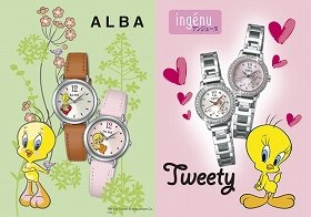 セイコーネクステージは、ワーナー エンターテイメント ジャパンとのライセンス契約で、「ALBA(アルバ)」と「ALBA ingenu(アルバ アンジェーヌ)」から、アメリカ生まれの黄色い鳥の人気キャラクター「トゥイーティー」をあしらったコラボレーションウオッチ(女性用4モデル)を2014年10月10日に発売する。