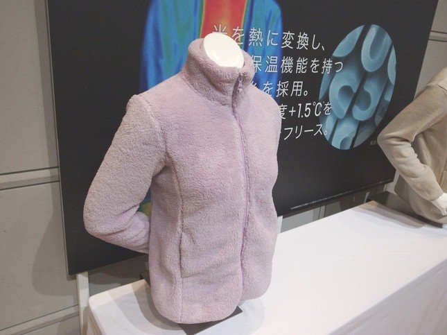 新ラインアップのうち「フリースフルジップジャケット」は蓄熱保温性を持つ特殊な糸を採用することで、衣服内の温度を以前より約1.5度高めた。糸の断面が「C」型になっていて、温かい空気をためこみ、繊維中の特殊ミネラルが太陽光を熱変換する。