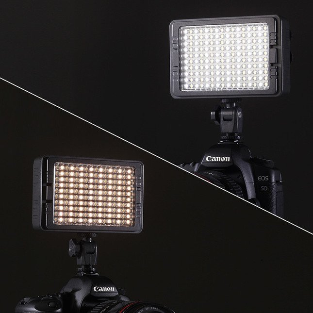 「カメラ用LEDライト 200-DG011」は、色温度調節機能がついた160灯のLEDを搭載したカメラ用LEDライト。本体側面のダイヤルを回すことで、LEDを白色やオレンジ色に調光することができる。撮影の雰囲気ごとにライトを付け替える必要がなく、様々なシーンを撮影したいときにうれしい商品だ。