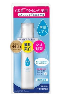 エイジングケアできる「素肌しずく 美白美容液WA」は、有効成分GKⅡ、プラセンタ、植物発酵エキスなどの美容液成分をたっぷり配合。とろりとした濃厚なテクスチャーで、気になるところを集中ケア。乾燥小じわをケアし、ハリ・弾力・透明感のある肌へ導いてくれる。