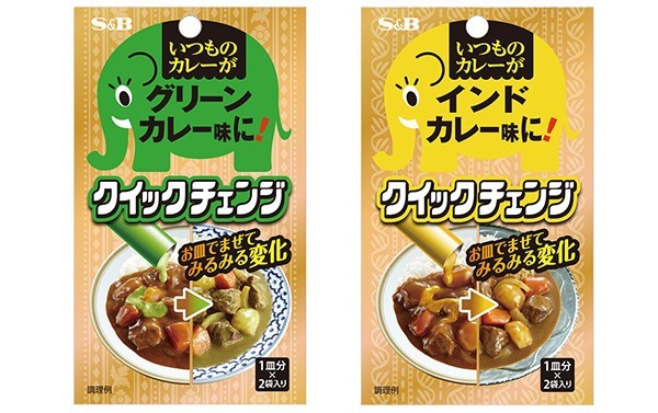 ヱスビー食品は、カレーに混ぜるだけで味わいが変化する「クイックチェンジ グリーンカレー味」、「クイックチェンジ インドカレー味」を2015年2月2日に発売する。