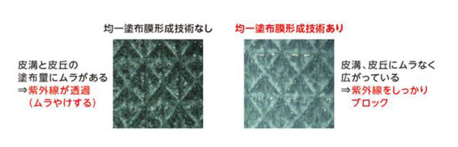 紫外線を防御する新技術を採用。肌表面の凹凸に均一に広がり、あらゆる角度からの紫外線をブロックする。