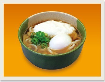 すりおろした山芋と温泉卵ののったあっさり味のうどん。胃に優しそうだ。取扱い店舗数はカレーうどんよりも大幅に少なく、レア度が高い。