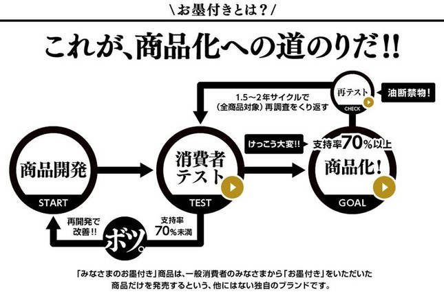 西友のPB「みなさまのお墨付き」は、消費者テストで味、価格、量について70%以上の人から支持を受けたもののみ商品化。発売後も定期的にテストを実施し、常に人気の高い商品を残す体制を整えている。
