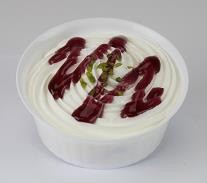 「もっちーず」はスポンジに伸びるチーズ生地を絞り、ホイップクリームとブルーベリーソースさらにピスタチオをトッピングした。今までのデザートにない「伸びるチーズ」という点と飽きの来ない味が特長。価格は220円。