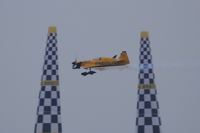 レースには、日本を含む世界中から14人のパイロットが参戦。公園の沖に設置されたコースには約2キロにわたってパイロンと呼ばれる高さ25メートルの障害物が設置され、飛行機はパイロンの間を通過しながらコースを往復する時間を競った。パイロンによっては通過する高度や進入角度が定められており、要件を満たせないとペナルティー(罰則)としてタイムが加算される仕組みだ。