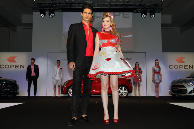 発表会にはスペシャル・ゲストに、"リアル着せ替え人形"として話題の米国出身のモデル、ダコタ・ローズさんがコペンをイメージした衣装で登場。2着の早着替えをおこない、コペンの丸いライトをイメージしたという飾りをつけた衣装で集まった人たちを魅了した。