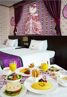 14年11月1日にオリジナルルームとしてオープンした「ハローキティルーム」は、「KITTY TOWN(キティタウン)」と「PRINCESS KITTY(プリンセスキティ)」の2タイプ4室ずつ(計8室)がある。新登場のオリジナルブレックファストはアメリカンがベース。キティのマークが付いたプレーンオムレツやエンブレムが付いたラタトゥイユ、キティ型の野菜が入ったグリーンサラダなど、栄養バランスも考えられている。ポタージュスープやサンドウィッチにもモチーフは取り入れられている。