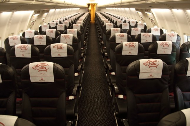 日本航空(JAL)は2015年7月14日、東京ディズニーシー(千葉県浦安市)の人気キャラクター、ダッフィーをペイントした「JALハッピージャーニーエクスプレス」(ボーイング737-800型機)を就航させた。ダッフィーが登場して2015年で10年になるのを記念して行われるキャンペーン「ジャーニー・ウィズ・ダッフィー Your Friend Forever」の一環としてお目見えした。