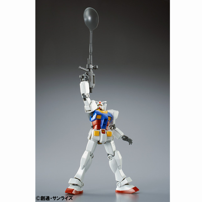また、「ガンプラHGUCシリーズ」最新作、艶のある特別カラーで仕上げた限定版の「RX-78-2ガンダム」が付属。色分けされたパーツを組み立てるだけで、幅広い可動域と洗練されたプロポーションがイメージ通りに完成する。スペシャル限定武器として、先端がスプーンとフォーク形状の斬新な「ハングリーウェポン」2種が付属する。