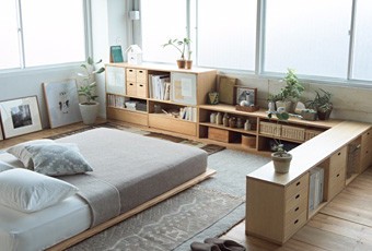 もう1つの展示のテーマは「くらしと収納」。収納とは物を整理して備蓄するだけでなく、くらしの景色を作ることでもある。愛着のあるものを無作為に並べただけの景色も、取り出しやすく仕分けて整えた景色も、それはそれぞれの人にとっての心地良い景色だ。無印良品の収納アイテムの特長や使い方を、広いスペースを使って展示する。