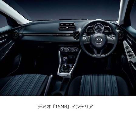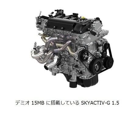 「デミオ 15MB(イチゴー・エム・ビー)」150万1200円~156万6000円(同)は、ジムカーナやダートトライアルへの出場を想定し、1.5Lガソリンエンジン「SKYACTIV-G1.5」を搭載。同エンジンには力強いトルクと高い燃焼効率を叶える「4-2-1排気システム」を採用している。さらに、6速の「SKYACTIV-MT」や大径ブレーキを採用することで、モータースポーツシーンで思い通りの走りを味わえるという。