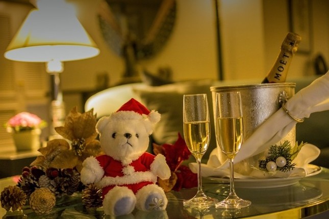 その他、バスローブやインルームスパの割引券、ホットアイマスク等が付いた「おひとりさま流のクリスマス【自分へのご褒美に】」(1万1400円~)や、ホテル日航福岡オリジナルサンタテディベアが付く「Christmas Lovers」(8400円~)、スイートルームにクリスマスケーキやシャンパンが付いた「Private Christmas」(2万4000円~)がある。