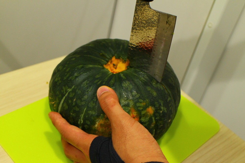 日本中がハロウィン熱に浮かれる中、カボチャが食材であるということを忘れかけていた人も多いことだろう。そこで今回は、手を切ってしまうおそれもある「カボチャ」を安全に切り分け、調理する方法を紹介したいと思う。