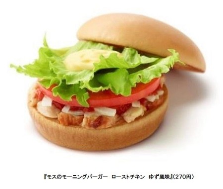 モスバーガーは2015年12月8日から、開店時から午前10時30分までの朝限定メニューとして「モスのモーニングバーガー ローストチキン ゆず風味」を発売。