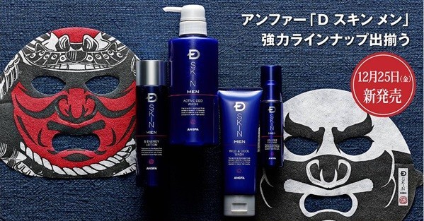 アンファー(東京都千代田区)は、新ブランド「D スキン メン」から「アドバンスエッセンス」(多機能美容液、5000円、税込=以下同)、「トラディショナル フェイスマスク」〈1500円〉、「アクティブ デオ ウォッシュ」(ボディソープ、2500円)の3商品を2015年12月25日に発売する。