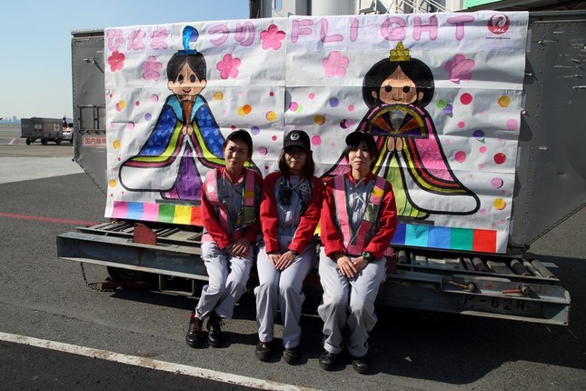 日本航空(JAL)が桃の節句恒例の「ひなまつりフライト」を2016年3月3日、羽田空港から運航した。整備や荷物の積み込みなど、できるだけ多くの業務を女性が行うことをコンセプトにしたフライトだ。従来は機長や整備の最終確認のサインを男性が担当していたが、今年は、開催8年目にしてすべての業務を女性が担当した。