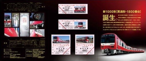 京浜急行電鉄(東京都港区)は、金沢文庫駅で、2016年3月から投入の「新1000形1800番台」車両の「デビュー記念乗車券」を2016年3月5日7時から3月21日まで数量限定発売する。