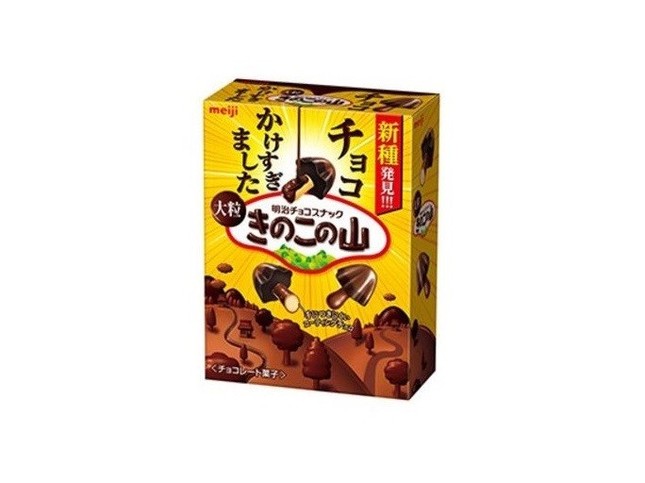 明治は2016年3月1日、「チョコかけすぎました大粒きのこの山」を発売した。