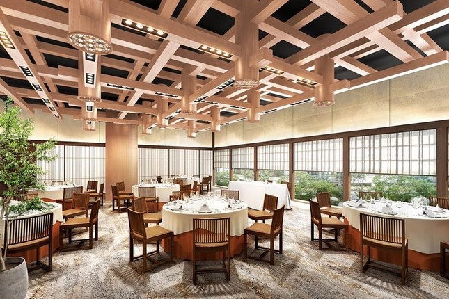 宴会やウエディングなどに対応した和モダンスタイルの宴会場。「温故知新」の造語となる「恩湖知新」をコンセプトとし、琵琶湖の恩恵を受け育んできたホテルの歴史と和食の伝統を守りつつ、新たな味覚など現代ニーズに応える。モチーフは近江商人の邸宅で、空間の賑わいや活気、力強さが感じられるデザイン。湖面に立つさざなみを表現した「さざなみ石」や、やわらかな印象の「鳳凰竹」を配した日本庭園が窓から臨める。個室も3室隣接しており、大切な集まりにぴったりの雰囲気だ。