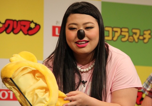 お笑いコンビ「トレンディエンジェル」や「ブラックマヨネーズ」、お笑い芸人の渡辺直美さんら、吉本興業所属のタレントが2016年5月19日、東京・渋谷の「ヨシモト∞ホール」で行われた、ロッテ製品の「ビックリマン」「コアラのマーチ」とのコラボレーションイベントに出席した。