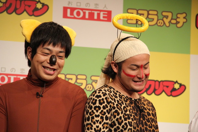 イベントに出席したのはほかに、お笑いコンビ「バンビーノ」や、同「麒麟」の田村裕さんら計8人。それぞれが思い思いに小道具を使ってコアラやビックリマンのキャラクターになりきった。