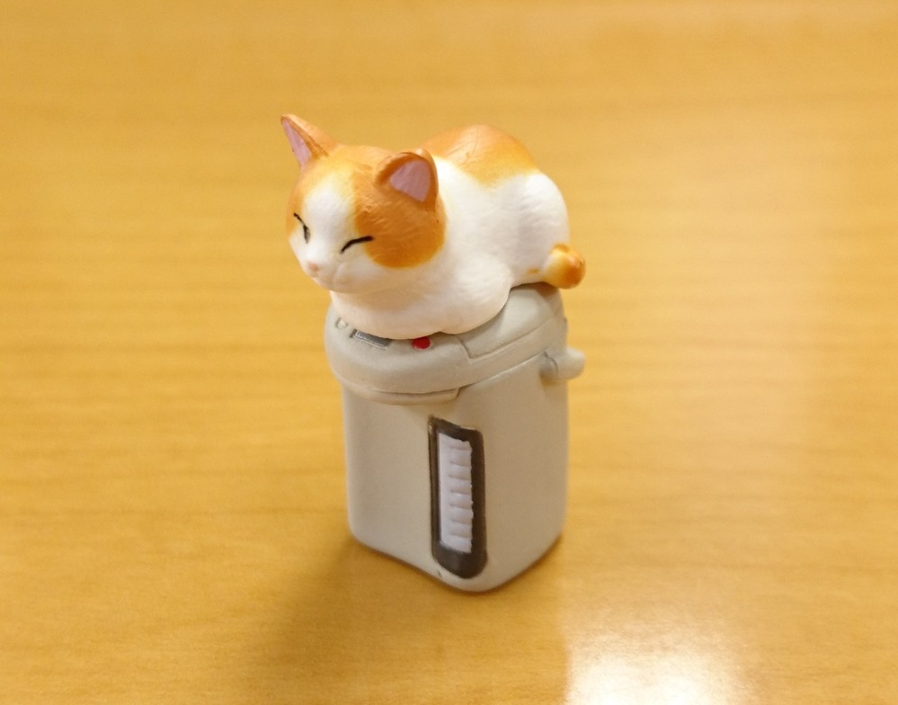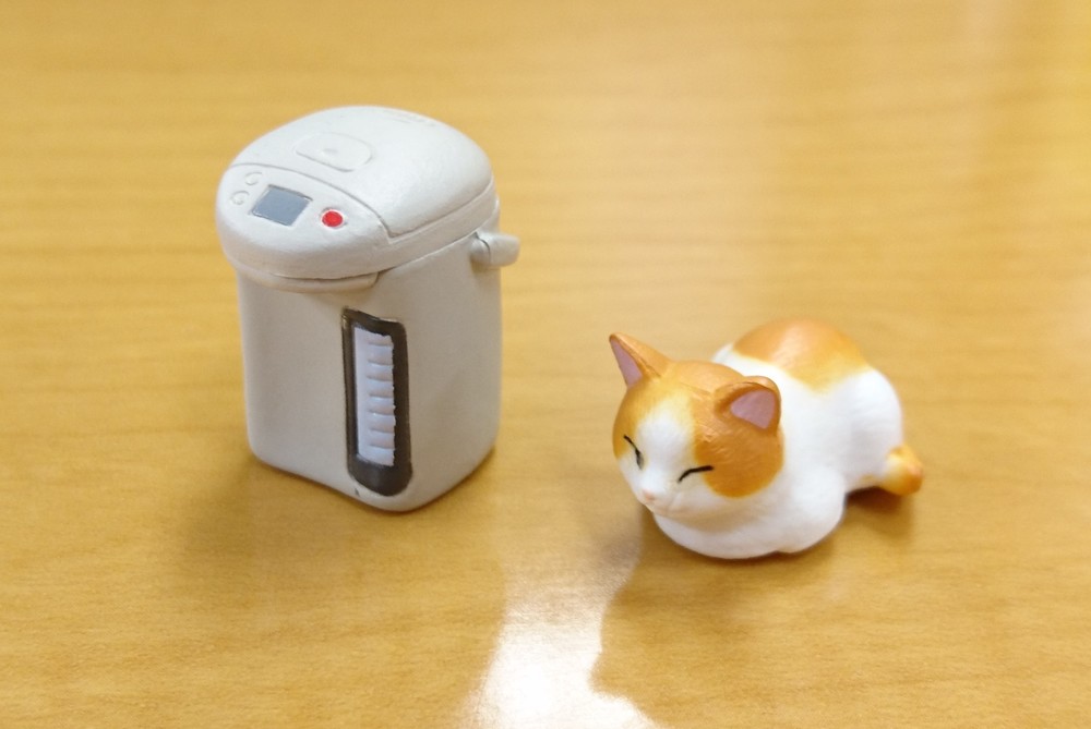 エポック社から、猫好きの心をくすぐるカプセルトイ「吾輩の定位置(ぽじしょん)」が発売された。炊飯器と電気ポットの上で暖をとる姿をフィギュア化したシリーズだ。