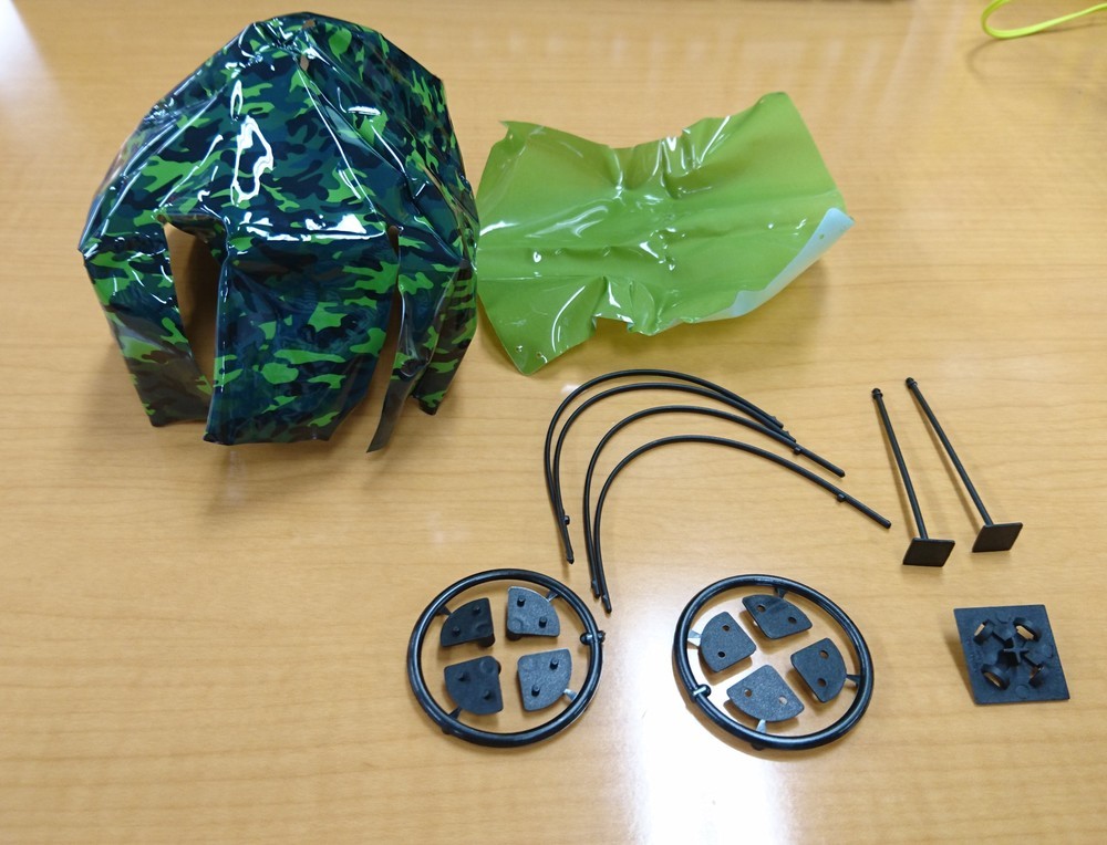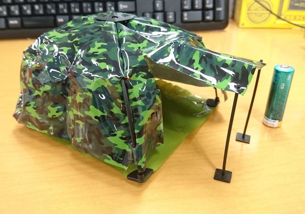 実物と同じようにポールをテントの四隅から差し込んで組み立てるタイプで、パーツ数も17個と細かい。組み立てると10cm×10cmのリアルなテントが完成する。