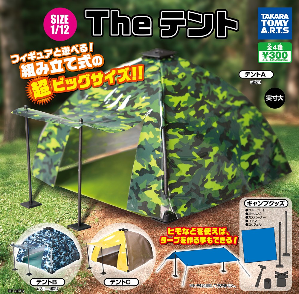 タカラトミーアーツが「テント」のミニチュアをカプセルトイで発売した。1/12スケールとカプセルに入る限界のビッグサイズで、パーツも組み方も実物に近い超本格的な仕上がりを実現した。