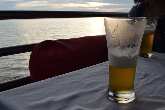 タイミングを見計らったかのように、クルーザーの乗組員が地元名物のアンコール・ビールとカナッペを持ってきた。あっさりビールを飲み干した記者に、「これもどう?」とシャンパンボトルのサービス。
