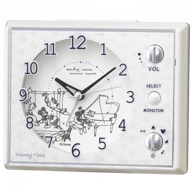 セイコークロックは、ミッキーマウスとミニーマウスの声や、ディズニー映画の名曲など15種のアラーム音を搭載した目ざまし時計を2016年11月25日に発売する。