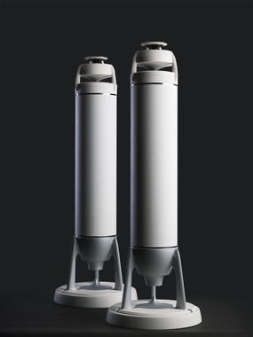 CDを超える高音質「ハイレゾ音源」対応のスピーカー「TS1000F」。無指向性でスピーカーの設置位置に関係なく室内のどの場所でも音場を楽しめるという。振動板に「ポリマー・クレイ・コンポジット」を採用したハイルドライバートゥイーターを搭載。