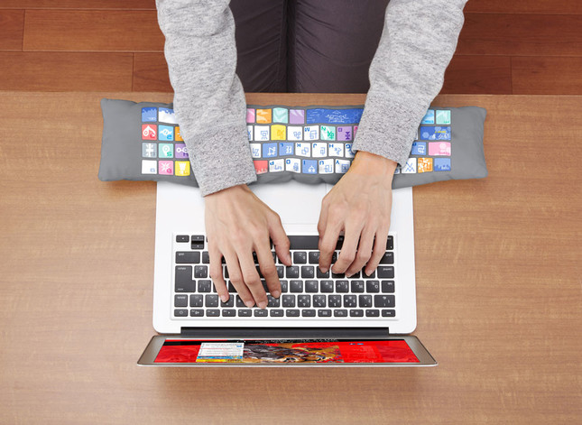 デスクと体の間に挟んで使うと、楽な姿勢でPCの操作ができる。アームレストの上に腕を乗せれば疲れにくく、自宅やオフィスなどでの長時間のPC作業のパートナーに適している。