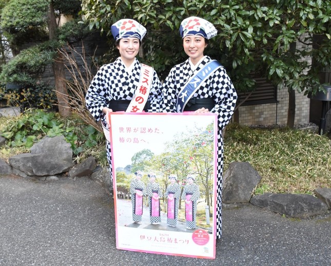 伊豆大島は13年に台風による大規模な土砂災害を受け、東京都は観光復興支援事業を続けており、大島への旅行について1人1泊3000円の助成などを実施している。期間は17年3月31日まで。「ミス椿の女王」の殿村舞子さんは「お安く大島に来られる可能性がある機会。ぜひお訪ねください」とPRした。
