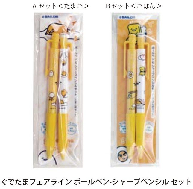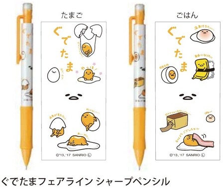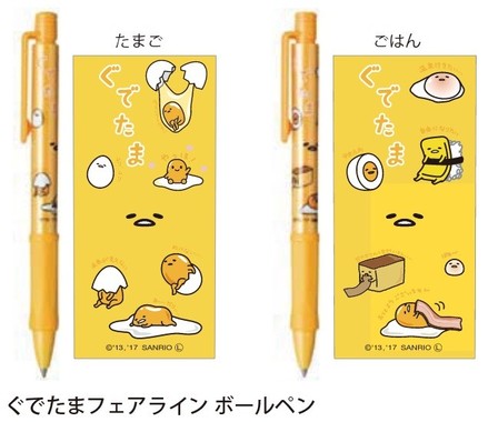 ボールペンとシャープペンシルの軸は「ぐでたまワールド」全開のデザイン。たまごとごはんの2柄をラインアップし、単品だけでなく各1本を組み合わせたセットも発売する。