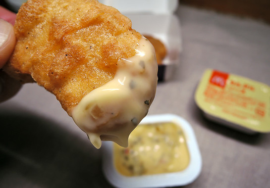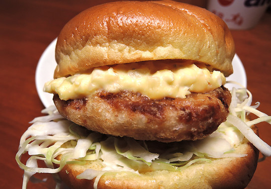 今回新たに登場した「チキンタルタ」は、パティからタルタルソースがあふれんばかり。いかにも食欲がそそられる。タルタルソースが主張しすぎないか心配になるところ、意外にもバンズ、パティ、ソースのバランスがとれていた。玉子の甘みとピクルスの酸味とタマネギの辛味が絶妙で、サクサクとしたチキンパティがこってりした味わいに。「チキンタツタ」のあっさり風味とは対照的ながら胃にもたれる感じがなく、万人受けしそう。