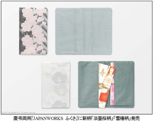 新しいライフスタイルを提案するデザインカンパニー、デザインフィル(東京都渋谷区)は、日本の技と美意識をベースに新たな視点でデザインしたプロダクト「JAPANWORKS」から、京都の機屋(はたや)で織りあげた「ふくさ」に新柄の「淡墨桜柄」「雪椿柄」を加え、2017年2月16日に発売する。