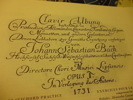 ちなみに、楽譜の扉ページには、「クラヴィーア練習曲集。プレリュード、アルマンド、クーラント、サラバンド、ジーグ、メヌエット、その他の典雅な楽曲を含む。愛好人士の心の憂いを晴らし、喜びをもたらさんことを願って、ザクセン=ヴァイセンフェルス公宮廷現任楽長ならびにライプツィヒ市音楽監督ヨハン・ゼバスティアン・バッハ作曲。作品I。自家蔵版。1731年。」という長い記述があります。練習曲、と書かれていますが、これは現代の私たちが想像する古典派のツェルニーなどの練習曲とは違い、「演奏することによって、様々な曲が体験できる」というほどの意味で、ライプツィヒの前任者が出版していた曲集タイトルを模倣したものと考えられています。オルガンやオーケストラを必要としない、チェンバロさえあれば、家庭でも演奏できる器楽曲ですから、バッハがいわばライプツィヒの一般市民に向けて発表して、評価を問うた自信作だったのですが、当時から「かなり演奏の難易度が高い」として、残念ながら売れ行きは思ったほどではなかったようです。